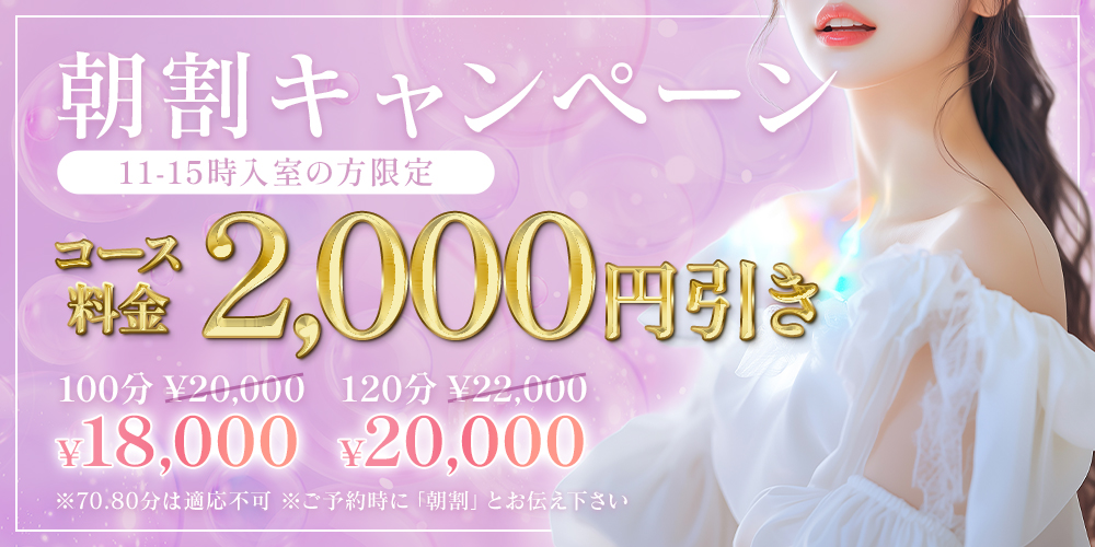 『朝割』『深夜割』に関しては必ずご予約時にお伝えして頂く様にお願いいたします。